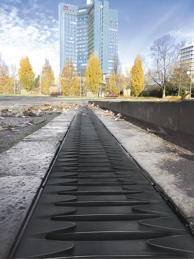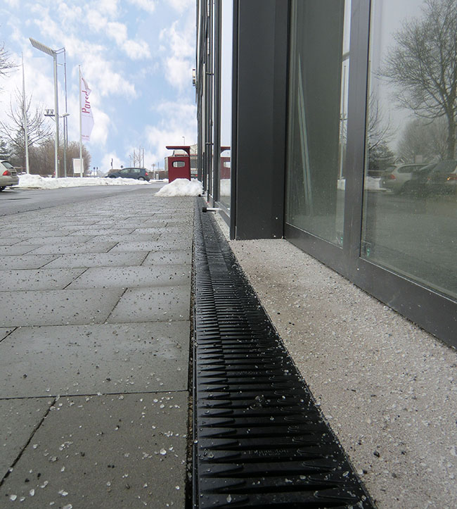 Beim Bau von modernen Flächen und Plätzen werden zunehmend hohe Anforderungen an die Sicherheit der verwendeten Bauteile gestellt. Sie sollen nicht nur beständig funktionieren, möglichst wenig Wartungsaufwand erfordern und schick aussehen. Bei manchen Einsatzbereichen sind besondere Eigenschaften nötig. So sollen beispielsweise Entwässerungsrinnen die jährliche Wintersalzung dauerhaft und ohne Schaden überstehen. Dafür haben sich Recyfix Pro Rinnen von Hauraton etabliert. „Rinnen und Abdeckungen dieser Recyfix Serie bestehen komplett aus Kunststoff und sind daher auch beim Einwirken von Streusalz im Winter vollkommen korrosionsfrei. Auch Jahre nach dem Einbau ist Rost kein Thema für unsere Kunden. Das verschafft Planern und Bauherren Sicherheit bei ihren Projekten“, beschreibt Dieter Bastian, Hauraton Vertriebsleiter für Deutschland und Österreich, die Vorteile des Vollkunststoff-Entwässerungssystems.